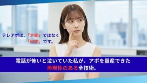 【サイト内リンク:あわせて読みたい】 テレアポは、この「聴く力」を鍛える最高のトレーニングです。電話が怖くて手が震えていた私が、どうやってアポイントを量産できるようになったのか、その全技術を以下の記事で公開しています。